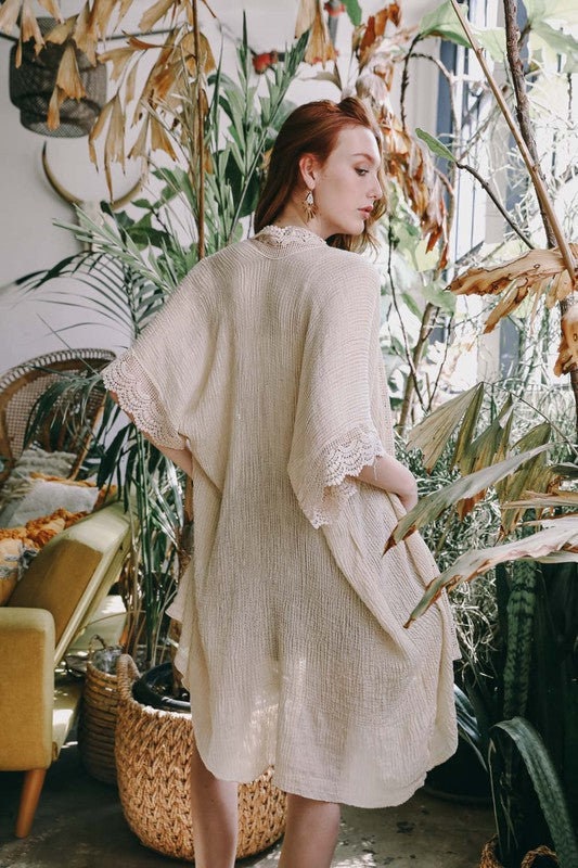 Beach Cover Up Lightweight Kimono Duster with Floral Leaf Print