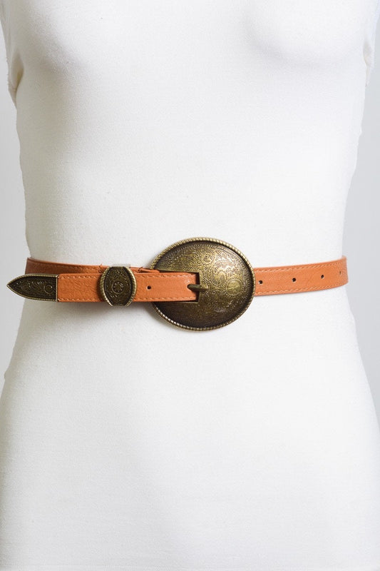 Oval Embossed Vintage Style Buckle Belt