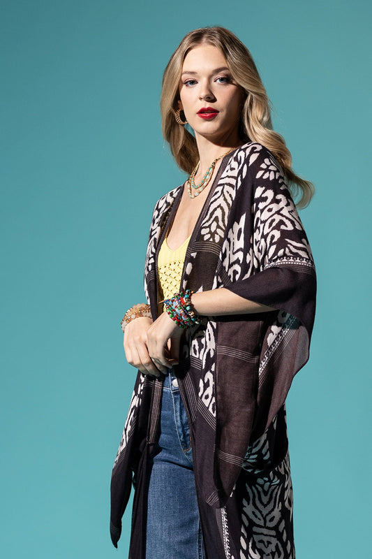 Black Lace Kimono Duster with Peacock Animal Crochet Lace Pattern
