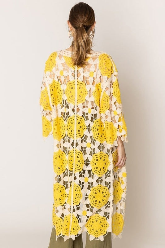 Dusty Pink Lace Kimono Duster with Crochet Floral Lace
