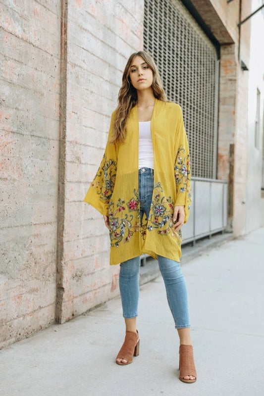 Embroidered Kimono, Taupe Brown Floral Embroidered Kimonos