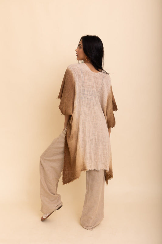 Cotton Taupe Ombre Kimono Duster, Solid Color Kimonos