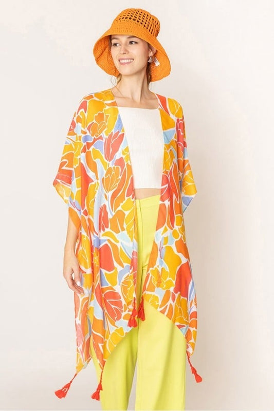 Tropical Floral Patterned Cover Up Kimono Poncho