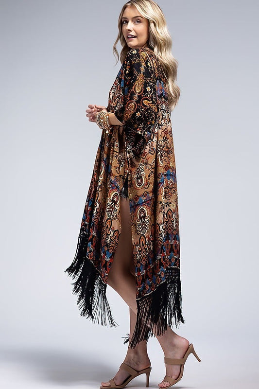 Ruffle Hem Kimono Duster with Paisley Pattern