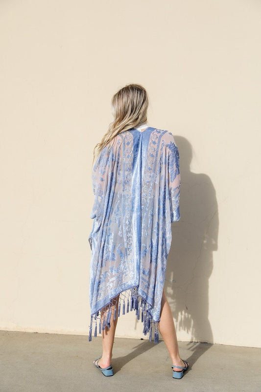 Soft Velvet Burnout Kimono with Tapestry Pattern and Tassel
