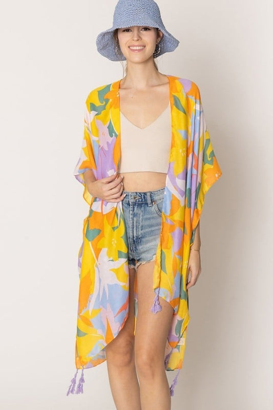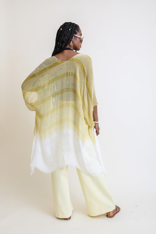 Yellow Beach Cover Up Striped Lightweight Kimono Cardigan Beach Cardigan