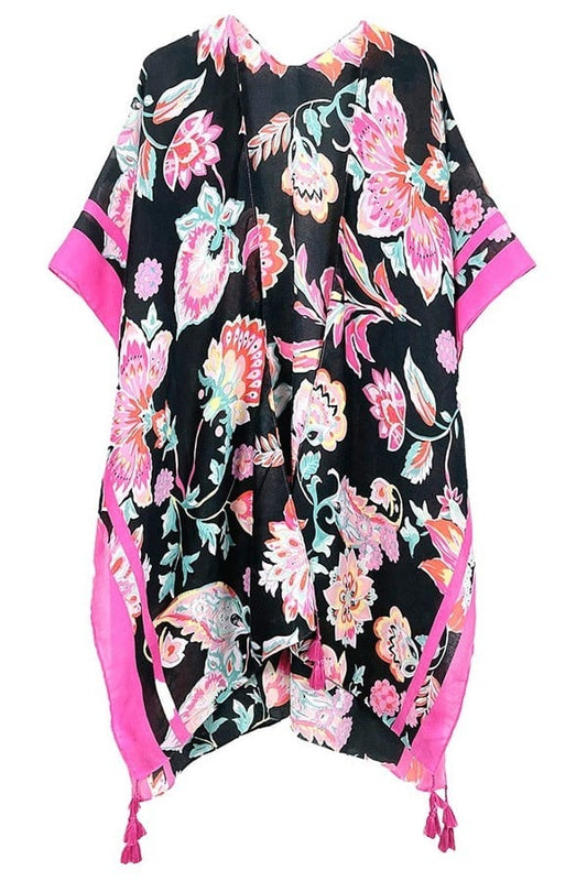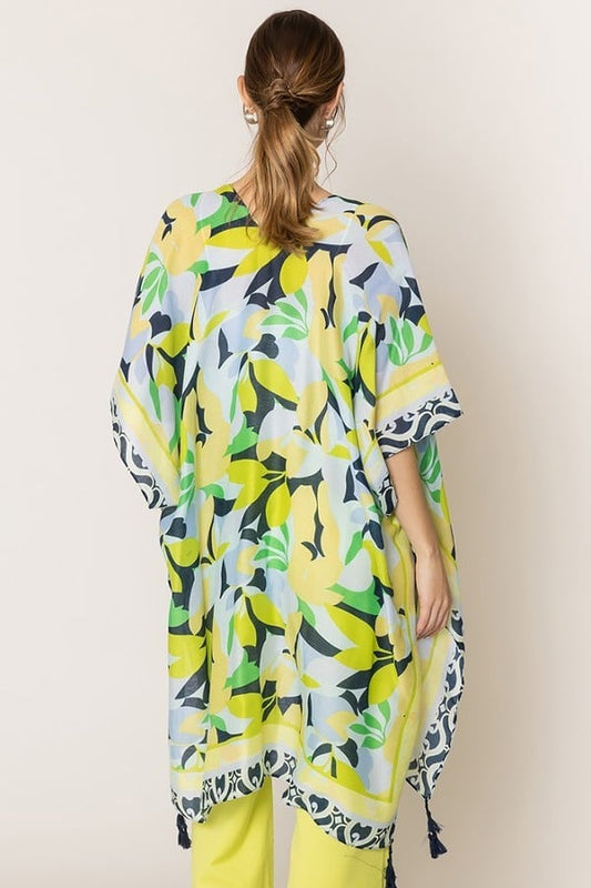 Tropical Floral Patterned Cover Up Kimono Poncho