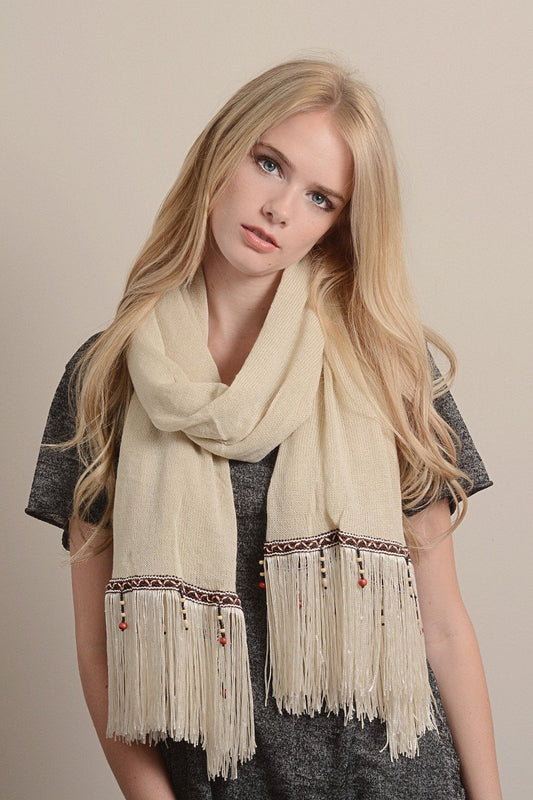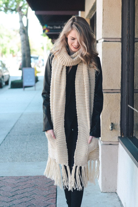 Winter Long Knit Scarf with Pockets Ivory Beige